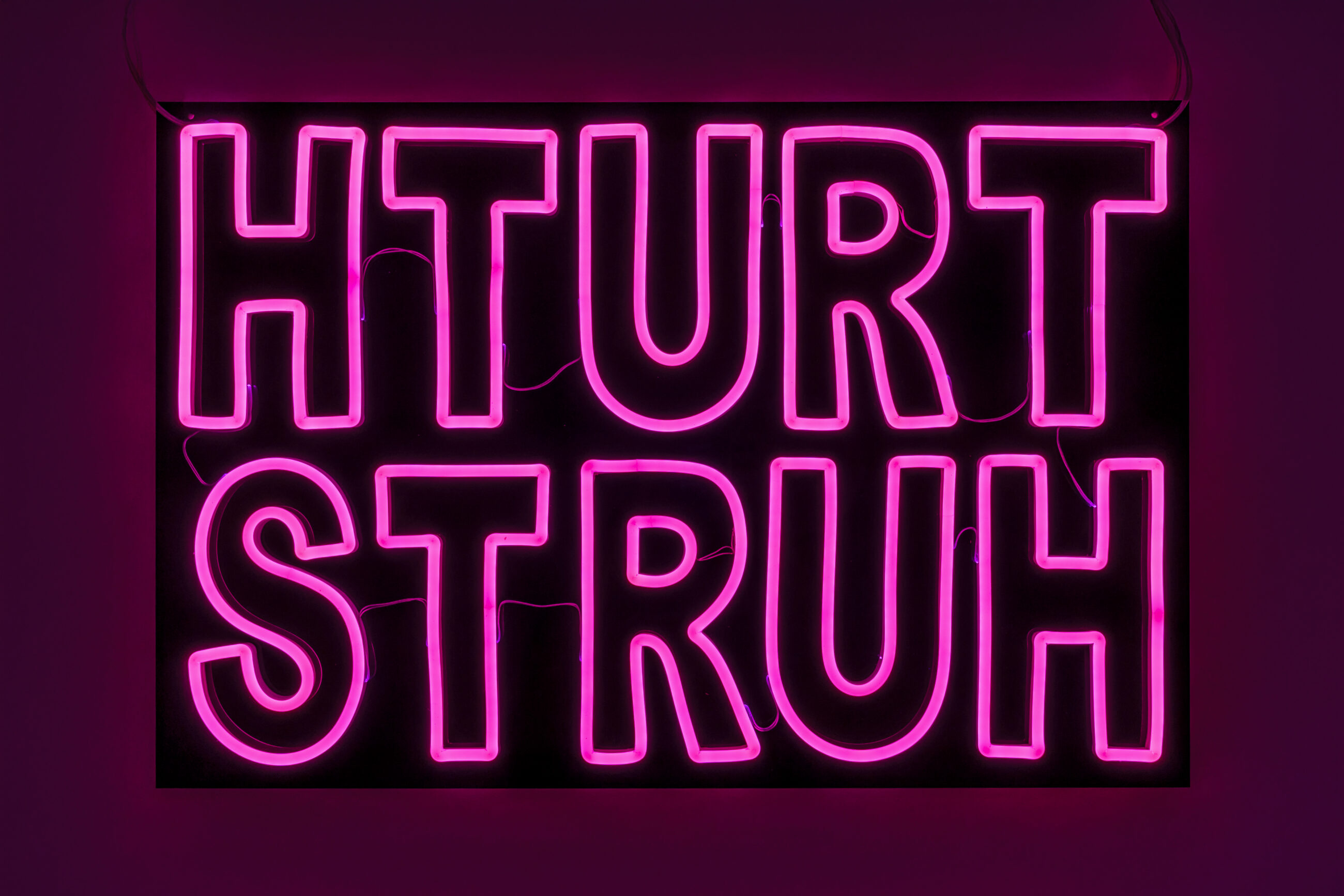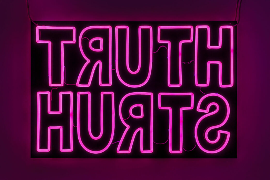 Wry and politically charged in its content, Truth Hurts, is a neon pink text-based work that Darren likens to sculpture, exploring a new artistic direction in his practice. It draws inspiration from philosopher Arthur Schopenhauer’s assertion that, “All truth passes through three stages. First, it is ridiculed. Second, it is violently opposed. Third, it is accepted as being self-evident.”