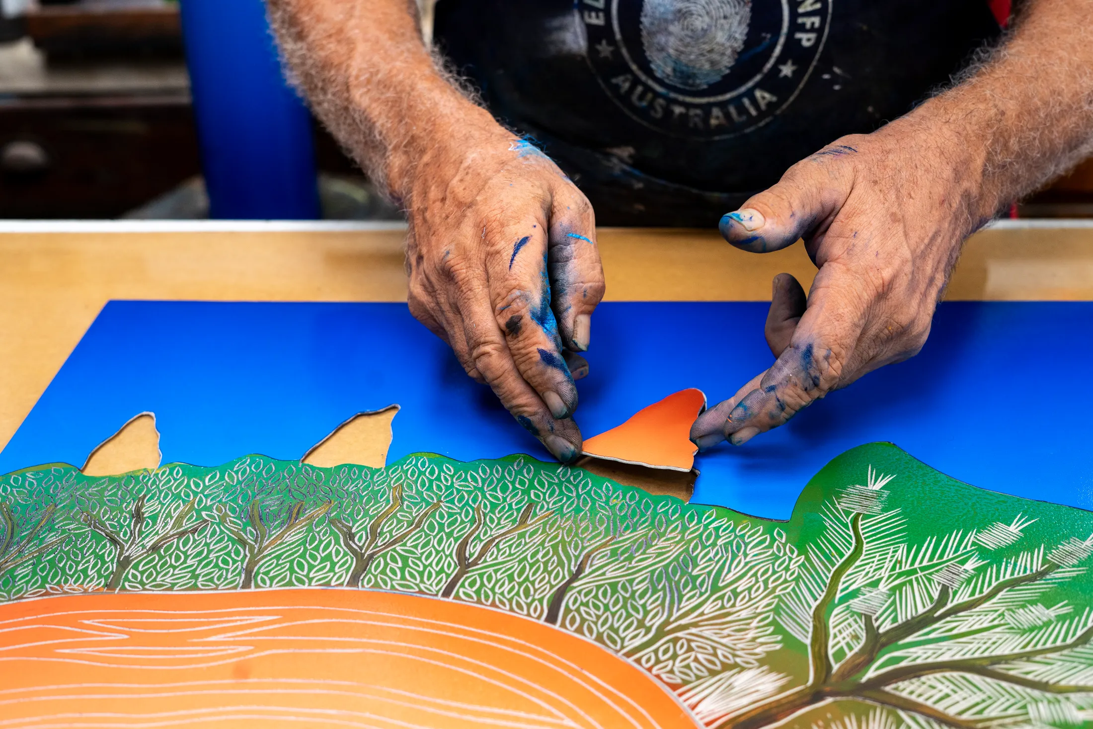 Carving his love for Country, the exhibition Middle World: Every change a continuation, every season a story sees Teho Ropeyarn illustrate the transient seasons of Cape York. With organic design, Ropeyarn draws on the interface of cultural memory and time to traverse the landscape in its wet, dry, and burnt form.