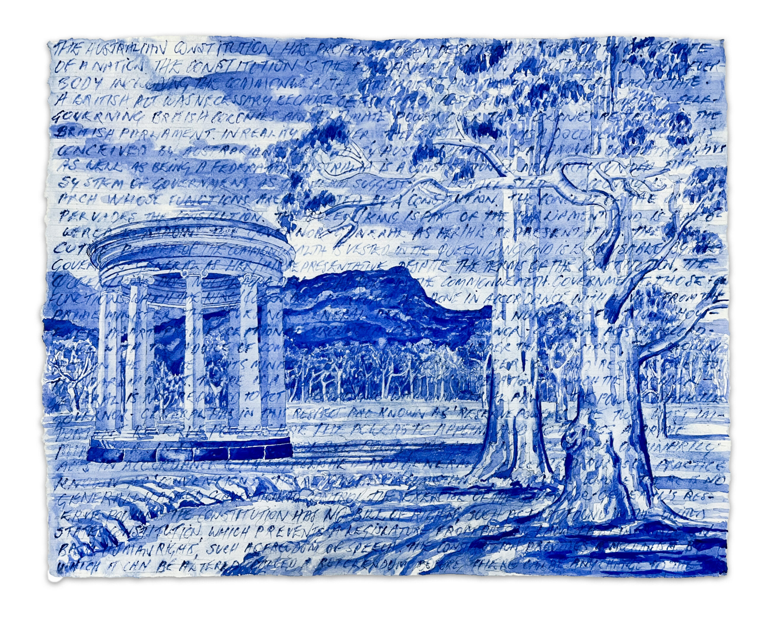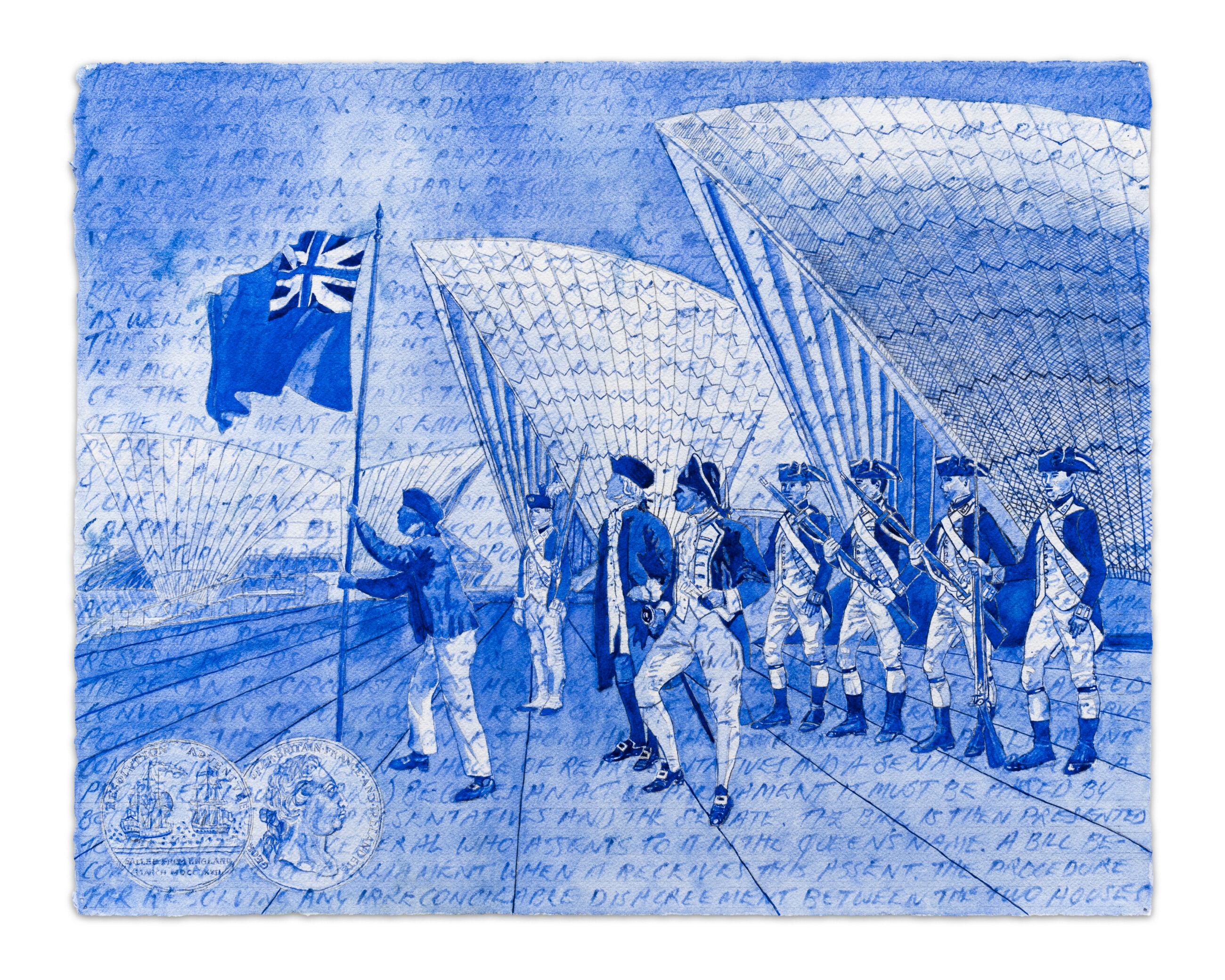 In Unsettled Ground, Sebastian Di Mauro reflects on the contradictions of Australia as a modern nation that continues to cling onto imperial symbols. Australia’s ongoing allegiance to the British monarchy reveals a lingering colonial mindset that sits at odds with its contemporary multicultural identity. Through hand-embroidered textiles and detailed watercolours, Sebastian reflects on the arrival of British colonisers and their attempts to overwrite the laws and traditions of First Nations peoples. In a country shaped by many cultures, the persistence of a distant monarch as head of state feels increasingly out of place. Unsettled Ground asks why Australia continues to hold onto inherited power and invites us to imagine a future defined on our own terms.
