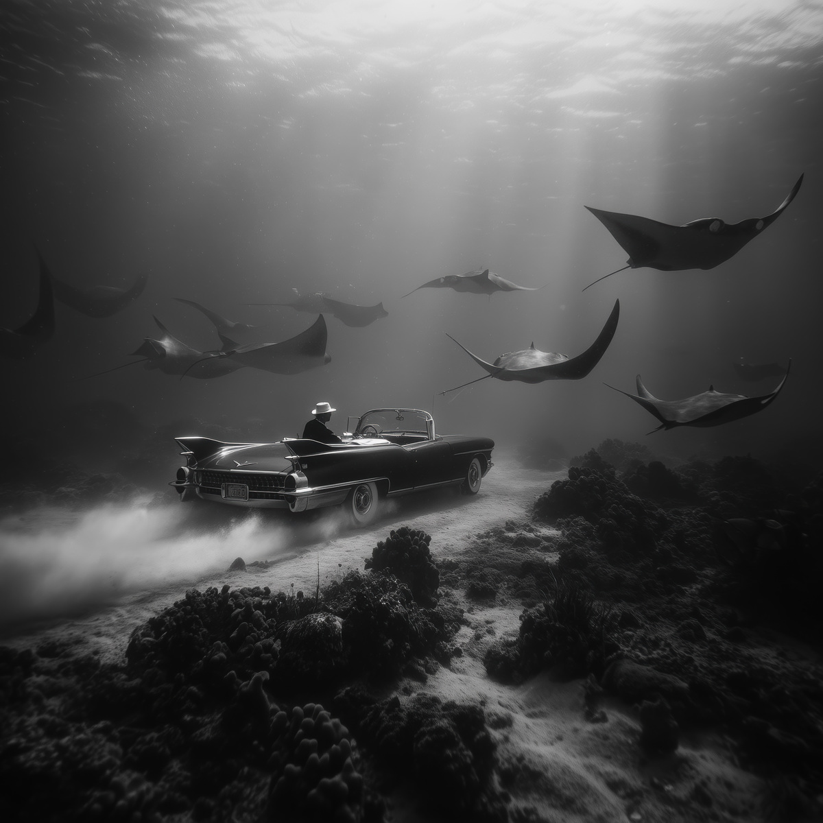 AI-generated film still printed on aluminum