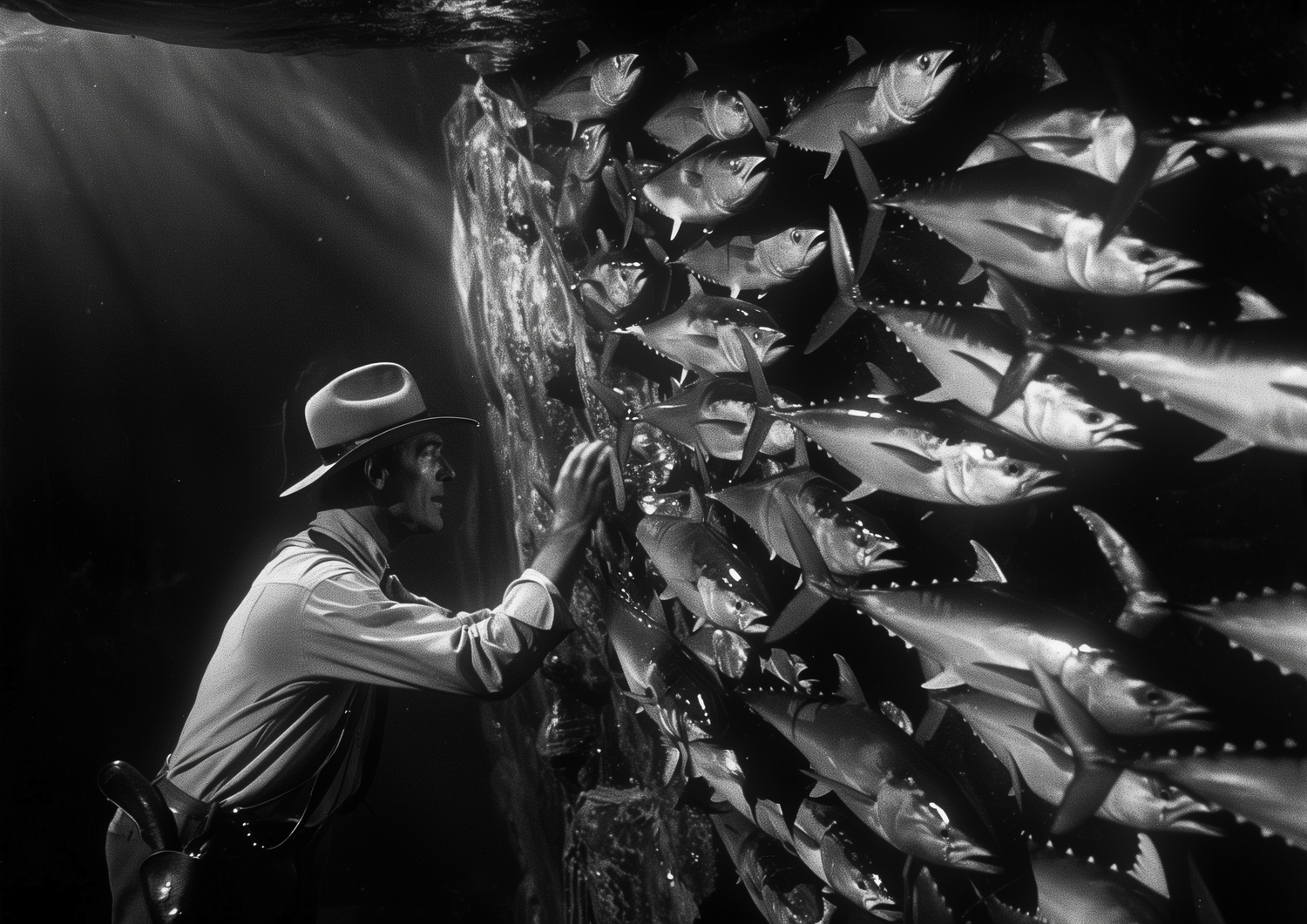 AI-generated film still printed on 300sgm Hahnemühle paper