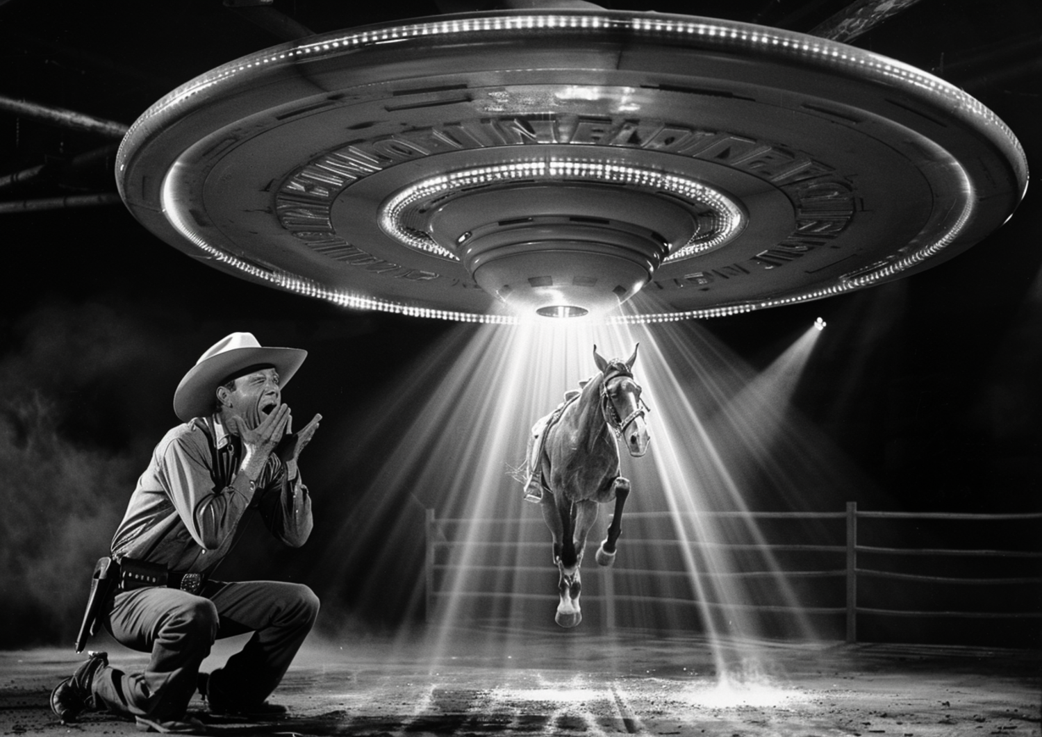 AI-generated film still printed on 300sgm Hahnemühle paper