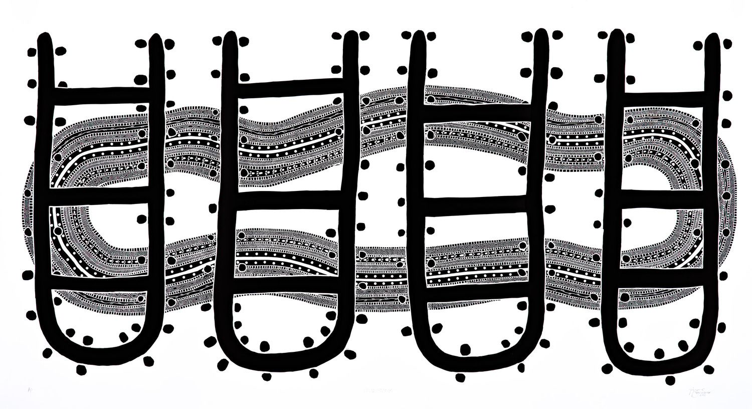 Vinyl-cut print and black ink on Hahnemühle paper
