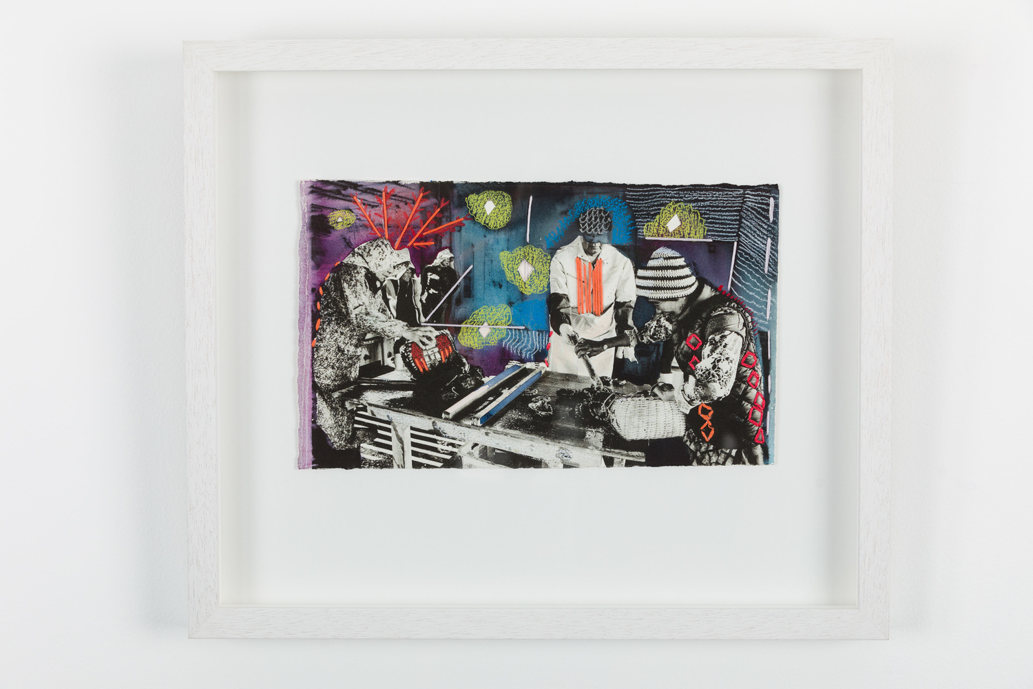 Digital photograph on arches paper, embroidery thread, ink, watercolour, watercolour pencil